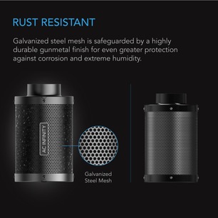 The high-airflow duct filter is designed to use activated carbon to eliminate odors and chemicals, popularly used for hydroponics, grow rooms, kitchens, smoking areas, and other ventilation projects. Features premium-grade Australian Virgin charcoal bed. The filter can be used in conjunction with an inline duct fan to act as both intake and exhaust configuration. Heavy-duty construction contains aluminum flanges and dual-sided galvanized steel mesh. The flanges can also be reversed to prolong the life of the filter. Includes a machine washable pre-filter cloth to prevent carbon residue.
