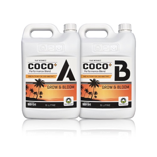 Plant Mechanics Coco+ is a precision formulated base nutrient designed to maximize plant growth and flowering in coco based growing systems. With a finely tuned blend of essential and trace elements, this pH stable formula ensures optimal nutrient uptake, promoting vigorous development from start to finish. Coco+ works seamlessly with Plant Mechanics additives and coco substrates to deliver next level results. Designed by Growers.