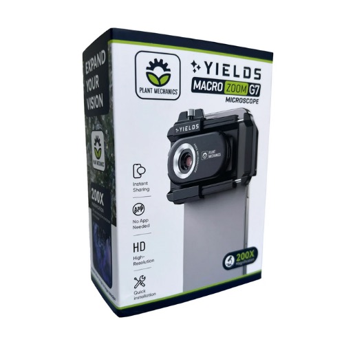 Transform your smartphone into a powerful diagnostic tool with the YIELDS Macro Zoom G7 — a phone-mounted macro lens delivering 200X magnification. Designed for growers the G7 captures high-detail photos and videos right from your phone’s camera.